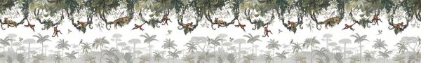 Due to the high placement of the illustrations, there remains visually a lot of space at the bottom of the wall, which makes it ideal for above a bed or dresser. The pattern is rich, playful and perfectly balanced – a tropical decor that continues to surprise and inspire, and gives every space a touch of wilderness.