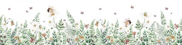 Suitable for spaces such as children's rooms, play areas, or even a creative corner, the image evokes a sense of calm and fantasy. The playful repetition of flowers, butterflies, and fairies creates a rhythmic, soothing whole that invites stories and imagination.