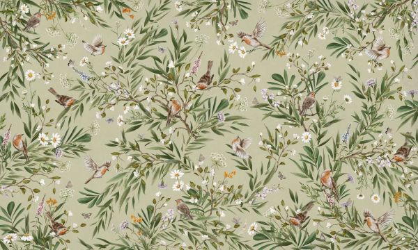 Playful Robins - Green in different materials